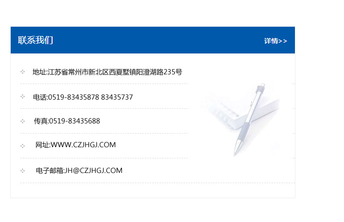 傳真:0519-83435688    郵編:213135    網址:WWW.czjhgj_com.aoweiyadz.com    電子郵箱:JH@czjhgj_com.aoweiyadz.com